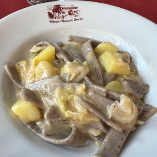 In cima non troverete nulla, ma proprio a due passi dal parcheggio si trova il Rifugio Roccoli Lorla, molto carino, con interni in legno e stufa accesa, pronto ad accogliervi con un bel piatto di pizzoccheri.